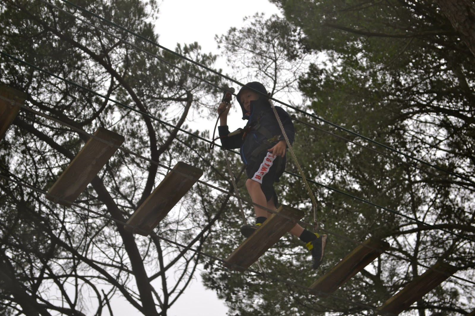 Elevrådet bjöd hela skolan på höghöjdsbana. Det fanns stora och lilla banan. Lovisa hade äntligen blivit lång nog för att kunna gå stora banan men blev ändå bortplockad eftersom hon vägde för lätt. Hon blev rätt ledsen men Carolina muntrade upp henne så att hon i alla fall gick lilla banan när värsta besvikelsen hade lagt sig. Jesper älskar sånt här, inte helt oväntat!