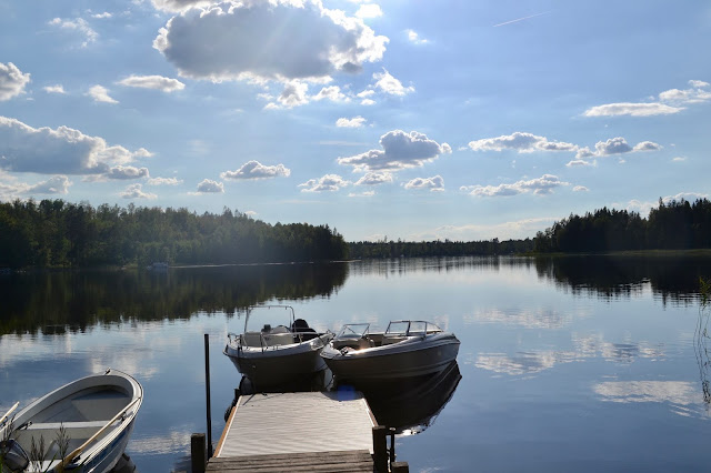 Vi inledde sommaren med ett par lugna veckor i stugan. Vädret var strålande och vi nöjt av stillheten, jag med en bok på bryggan, barnen på studsmattan eller spelandes fotboll och Johan med lite fixande. Vi fick besök av familj, vänner och vattnet var ljummet. Vi var också rätt flitiga med att träna, ett av sommarmålen. Lite sämre gick det med de portugisiska verben. Jag tänkte att jag sätter mig ner med det en regnig dag....